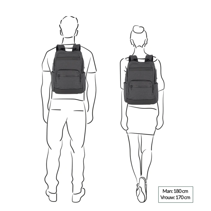 Deze laptop rugzak van Travelite is een tas uit de Meet serie. Een belangrijk aspect is natuurlijk het formaat van het laptopvak. Deze tas is voorzien van een laptopvak van 15,6″. Wil je zeker weten dat je laptop past in je nieuwe tas, meet dan je laptop even op, aangezien inch maten soms iets van elkaar kunnen verschillen. Vergelijk de afmetingen van je laptop met de buitenafmetingen (H 41 x B 30 x D 14 / 21) van deze tas. De afmetingen van je laptop moeten kleiner zijn dan de buitenafmetingen van je tas, als je zeker wilt weten dat je laptop past. Je krijgt op deze tas 2 jaar garantie. Het gevoerde laptopvak zorgt voor extra bescherming zodat jouw laptop veiling kan worden meegenomen. Jouw kostbare laptop kan zo niet beschadigd worden door andere items in je tas. In deze tas is er niet alleen een vak gemaakt om jouw laptop veilig in op te bergen, er is ook een vak voor je tablet. Dit tabletvak biedt bescherming tegen spullen in jouw tas met scherpe randen en punten, maar zorgt er ook voor dat de tablet goed op z’n plek blijft zitten tijdens de reis.